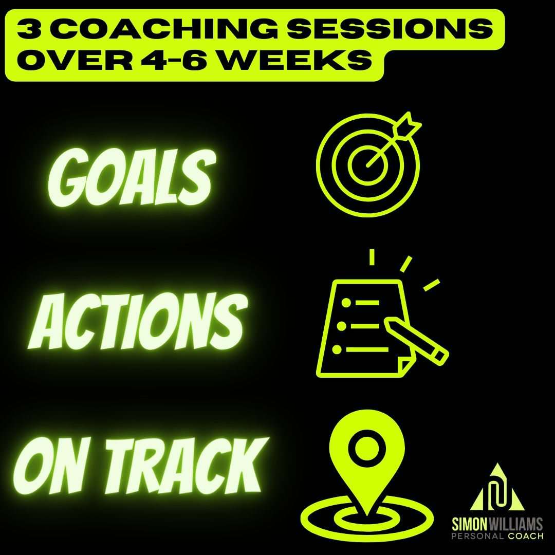 In these three coaching sessions we identify the goals most important to you then create steps to move towards them and then have a follow up session to ensure that you are on track or create changes that need to happen.
